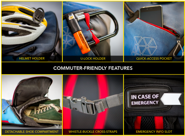 Aster背包具有良好的耐候性,使騎行更安全。背包配有16個 LED尾燈、30個LED剎車燈、兩個示廓燈和兩個前照燈,可以從不同的方向看到騎行者。