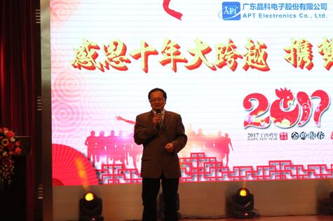 “憶晶科初創(chuàng),萬事多艱辛,十年沉淀,不忘初心,扎扎實(shí)實(shí)做好產(chǎn)品。”2017年1月18日,晶科電子舉行了“感恩十年大跨越,攜夢同行芯發(fā)展”為主題的年會,我們歡聚一堂,一起感受晶科電子十年風(fēng)雨同舟。年會以一張張老照片,一個(gè)個(gè)晶科人的面孔,一翻翻豐富的業(yè)績數(shù)據(jù)的宣傳片拉開序幕,讓我們重溫了十年來晶科人的拼搏與歷程,在每個(gè)晶科人心中洶涌澎湃著。