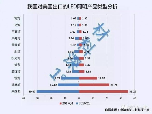 從出口數(shù)據(jù)來看,2017年一季度,美國進口我國LED照明產(chǎn)品總金額達到7.2億美元,2016年同期增長了29.36%,占我國整體出口的比重為27.45%。