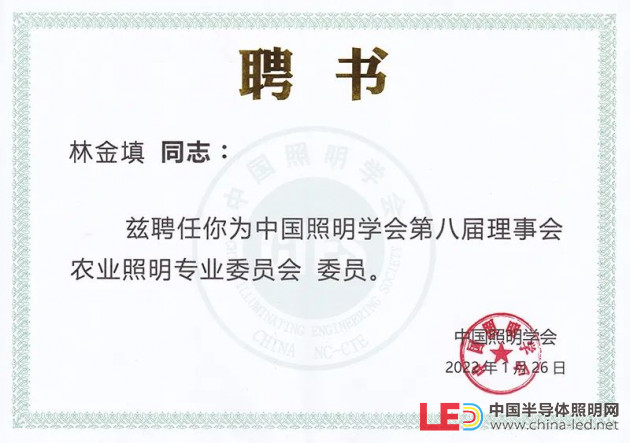 此前,在中國照明學(xué)會(huì)農(nóng)業(yè)照明專業(yè)委員會(huì)換屆會(huì)議上,林金填董事長(zhǎng)也當(dāng)選為中國照明學(xué)會(huì)第八屆理事會(huì)農(nóng)業(yè)照明專業(yè)委員會(huì)委員。